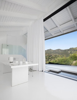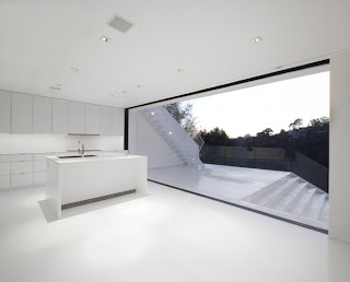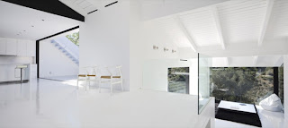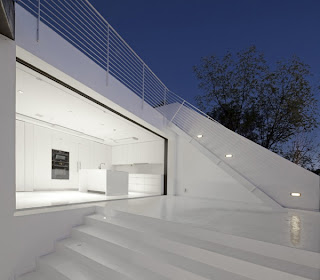 The design of the house in black and white shows that opposites attract - a black, striking exterior and clean, bright interior has a irregular flow, which takes you up, down and around. XTEN this redesigned architecture in Los Angeles, California, originally built in 1960 and brought into the spotlight. Hillside home sits on a ridge in the Hollywood Hills - Above the bustle of the city and surrounded by nature, a ravine protected natural area in the east, and Beachwood Canyon to the west and to the south. House Plan slope consists of a series of interlinked terraces, which will open doors for views through floor to ceiling sliding glass walls. Outside the home-style cool, clean and modern is its minimalist interiors. The terrace is the perfect place to enjoy the sun in privacy perfect